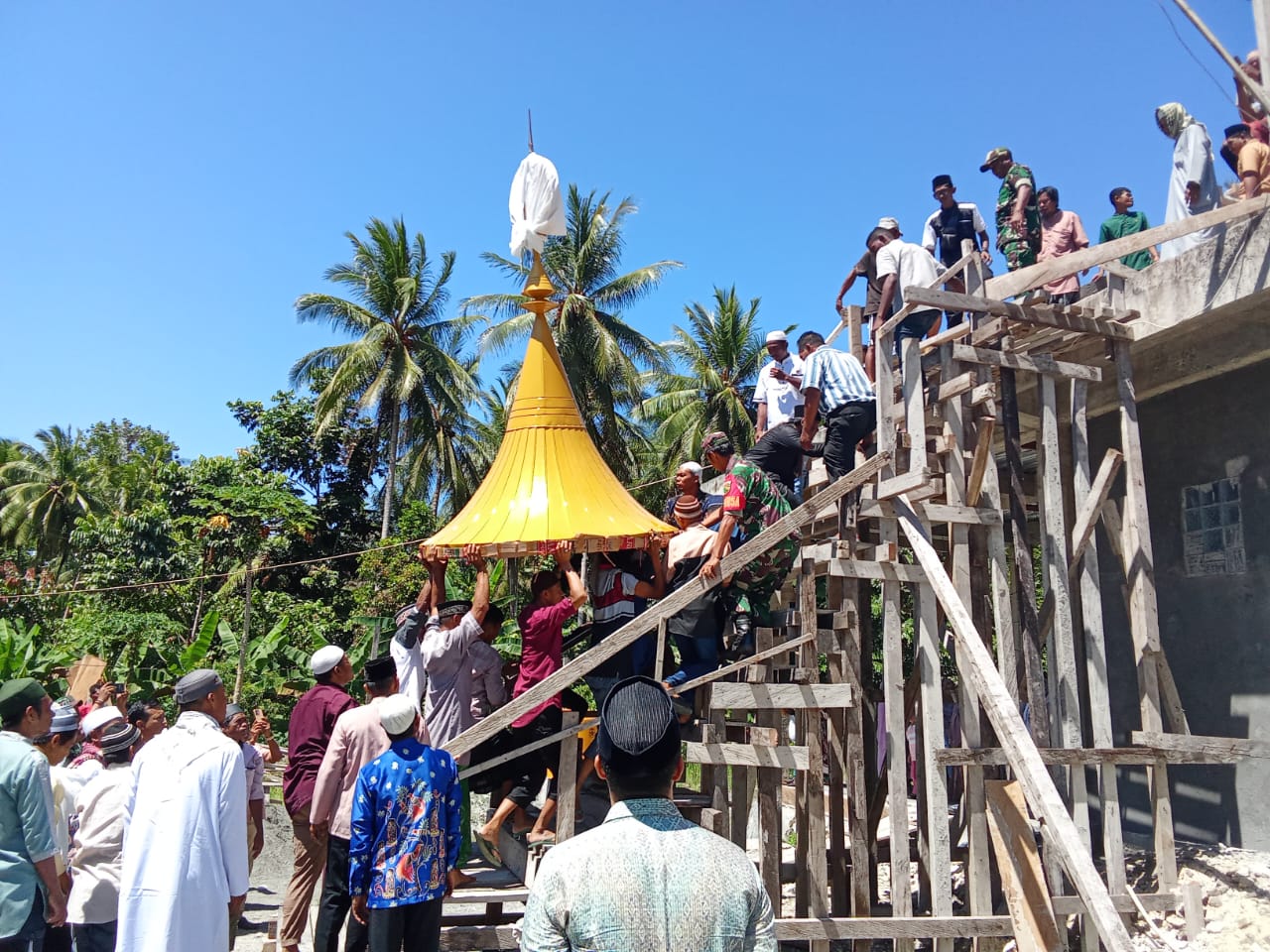 Pemasangan kubah berjalan lancar dan khidmat, disertai doa bersama yang dipimpin oleh tokoh agama setempat. Masyarakat berharap pembangunan Masjid Nengke segera selesai sehingga dapat digunakan untuk kegiatan ibadah dan pembinaan umat secara lebih optimal.