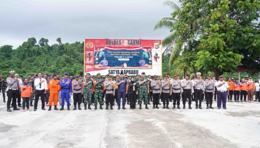 Petam, Kamis 12 Maret 2026 – Ketua DPR Kabupaten Sarmi Muhamat Asari Tiris, S.A.P. menghadiri kegiatan Apel Gelar Pasukan Operasi Ketupat Cartenz 2026 yang dilaksanakan oleh Polres Sarmi. Kegiatan tersebut berlangsung di Lapangan Apel Polres Sarmi, Petam, Kabupaten Sarmi.